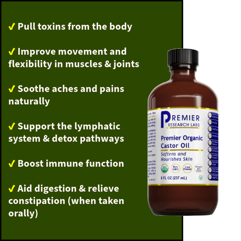 Even with a clean diet, your body absorbs toxins from smog, pollution, pesticides, and household chemicals. Castor oil flushes these out effortlessly.